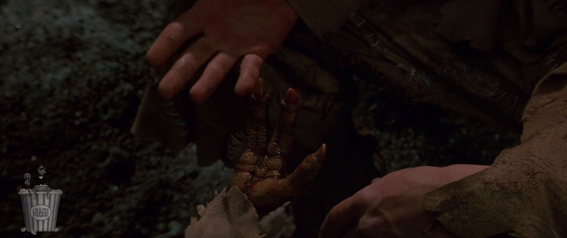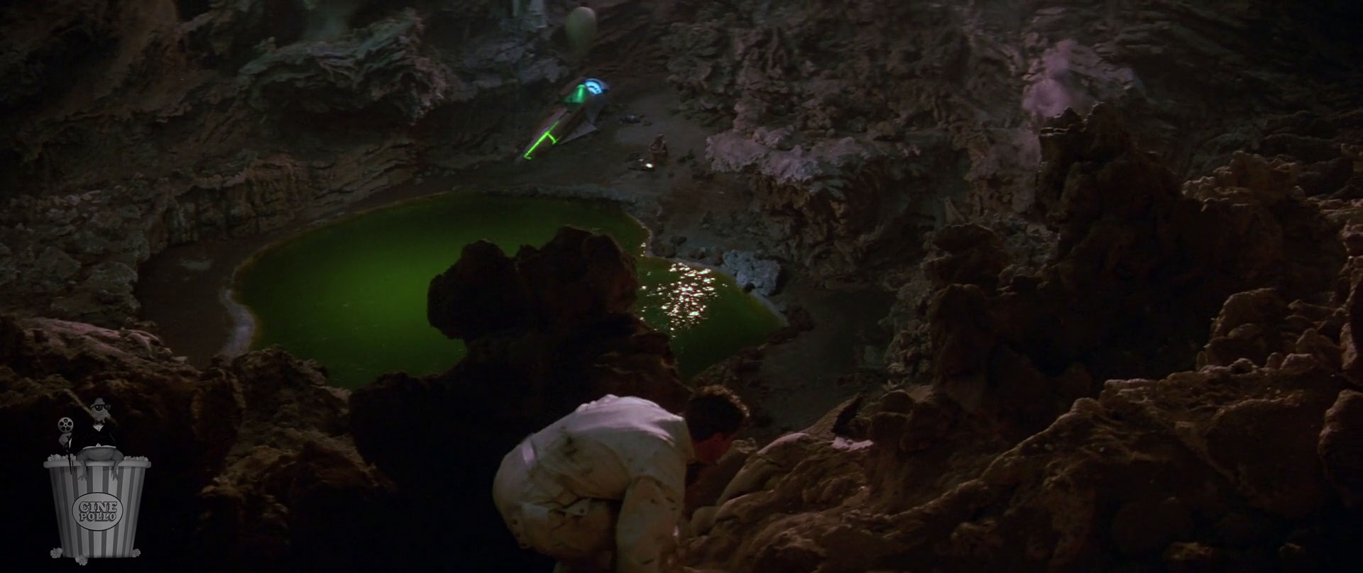 Por supuesto, luego de lo que parece una oportunidad para la paz entre humanos y dracs, tienen que buscar la forma de sacarlos del planeta, así que para esto debe haber un enemigo común. El título de la película es “Enemy Mine” que, haciendo alusión a la forma en que habla Jerry, se traduce a “Enemigo mío”, o bien puede traducirse a “Mina enemiga”. La razón por la que empecé a ver esta película hace todos los años del mundo fue porque nos la mercadearon con la primera traducción, porque no creo que haya sido buena estrategia venderla en Latinoamérica como “Mina enemiga”. Así pasamos a la mina enemiga, donde todos los conflictos entre dracs y humanos se resuelven con violencia, y el cómo fue que llegamos a esta trama raya con lo inverosímil a conveniencia del libreto.